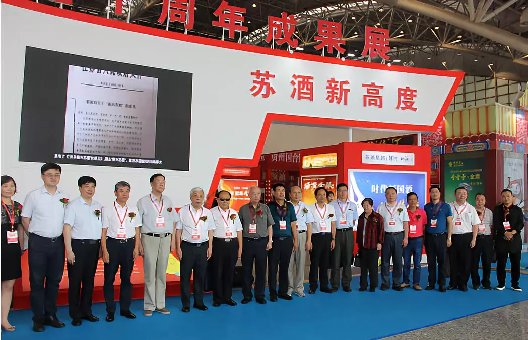(领导嘉宾在振兴苏酒二十周年成果展前留影)